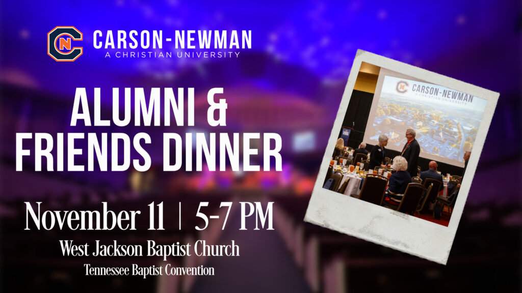 Join Carson-Newman’s administration and staff from the Offices of the President, Church Relations and Advancement for our Alumni and Friends dinner and program! Hear more about the incredible things God has been doing at Carson-Newman over the last few years. Please register for the dinner by visiting our booth or using the LINK. We can’t wait to see you there!