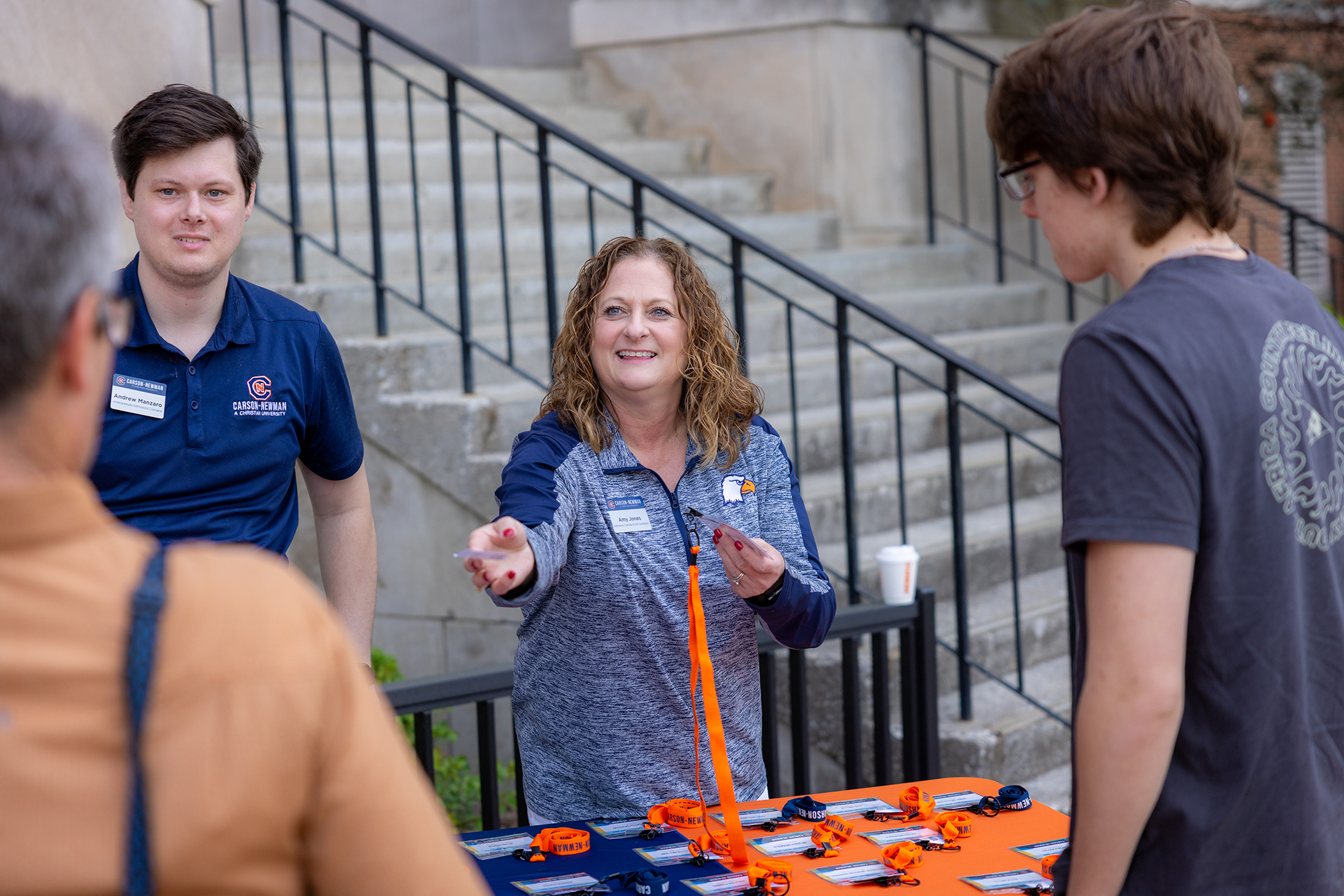 category: Campus News Carson-Newman celebrated as one of nation’s most transfer-friendly universities category: Campus News | August 12, 2025 Carson-Newman Admissions Counselors Andrew Manzaro (left) and Amy Jones (center) welcome students and their families to campus during April’s Accepted Student Day. The University was recently named to Phi Theta Kappa Honor Society’s Transfer Honor Roll, citing it as one of the most transfer-friendly institutions in the nation. For the fifth consecutive year, Carson-Newman is recognized for its approach to aiding students wishing to transfer to the University.Phi Theta Kappa Honor Society named Carson-Newman to its 2025 Transfer Honor Roll. The honor is in recognition of Carson-Newman’s “excellence in developing and supporting dynamic, innovative pathways for community college transfer students.” The Honor Roll is chosen from among the top 25% highest-rated colleges in the nation.“Being recognized again by Phi Theta Kappa Honor Society serves as confirmation of the effective processes we have in place – but beyond that, it reveals the heart behind the work,” said Carson-Newman President Charles A. Fowler. “Our outstanding staff’s sense of mission and community translates daily in how they welcome new students to campus.”The PTK Transfer Honor Roll recognizes Carson-Newman as one of the most transfer-friendly institutions in the nation. The distinction is determined by 40 key metrics related to the support and success of transfer students, including college cost and financial aid, campus life for transfer, admission practices, and bachelor’s degree completion.“I’m proud of the transfer outcomes we’re seeing at these Honor Roll colleges,” said Dr. Lynn Tincher-Ladner, president and CEO of Phi Theta Kappa. “These colleges are doing more than just opening doors—they’re walking students through them. Their commitment to creating clear, supportive pathways demonstrates what’s possible when student success is truly the priority.”Those interested in learning more about transferring to Carson-Newman can call 865-471-3223, or visit: cn.edu/apply Carson-Newman Admissions Counselors Andrew Manzaro (left) and Amy Jones (center) welcome students and their families to campus during April’s Accepted Student Day. The University was recently named to Phi Theta Kappa Honor Society’s Transfer Honor Roll, citing it as one of the most transfer-friendly institutions in the nation.
